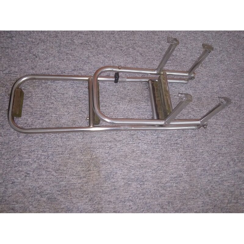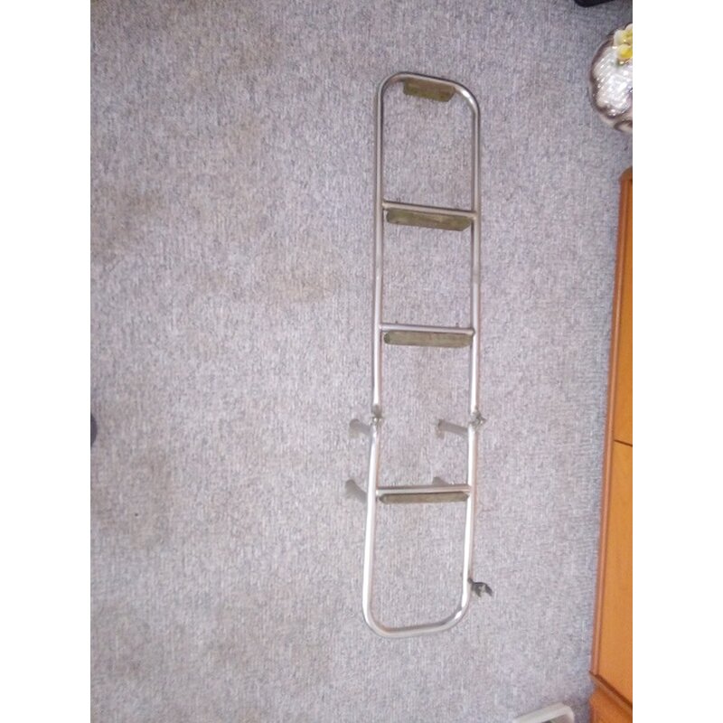 122cm hohe VA Badeleiter 5 Stufen Ø 22mm, 75 / 48cm eingeklappt, breite 25cm Innen 22cm Befestigungen Grundfläche zum Anbauen 19 x 25cm, Bohrlöcher 23 x 14,5cm