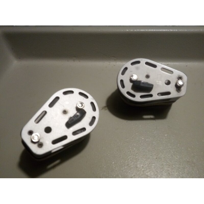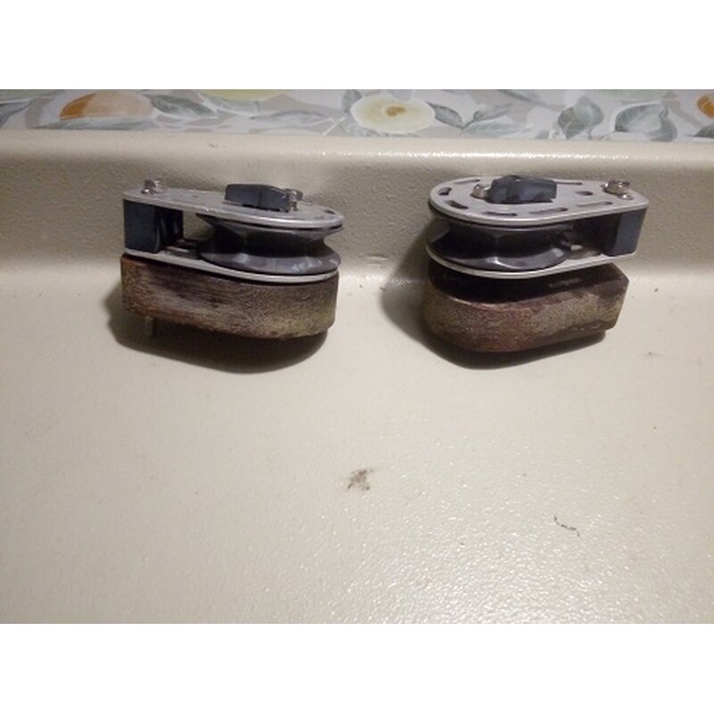 2 x Pfeiffer Knarrblock zum Aufschrauben, Tuffnol Sockel 20mm. Drehrichtung entgegengesetzt Tau bis Ø 12mm. 85 x 58mm Rolle ca. 55m gebraucht. Umschaltung auf Ratsche oder freilaufend Gebraucht