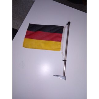 Flaggenstock VA 42cm, Ø 13 mm, Fuß 87 x 33mm, Flagge 20,5 x 29cm schön am Bug bei Motorboot gebraucht