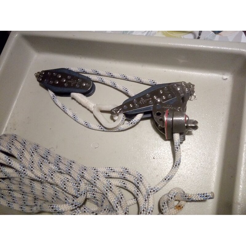 Kugelgelagerte Harken Großschot 260cm Ø 10mm gebraucht, 2x Violinenblock incl. Wirbel einer mit Klemme, gebraucht