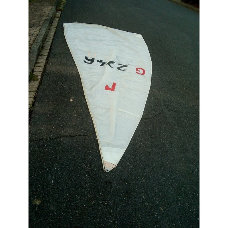 Das Segel ist älter, kann noch Jahre gesegelt werden, ist gebrauch. Wie man sieht hat es Schmutz