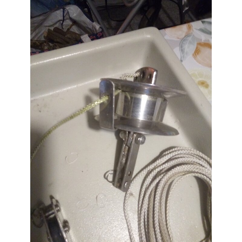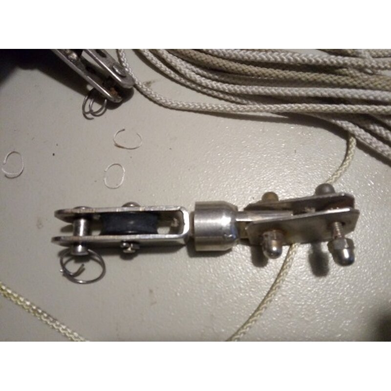 VA Rollfockanlage eines 7m Segelboot gebraucht, Trommel Außen Ø 109mm, höhe 100 bis 160mm. Topwirbel 116 bis 142mm hoch.