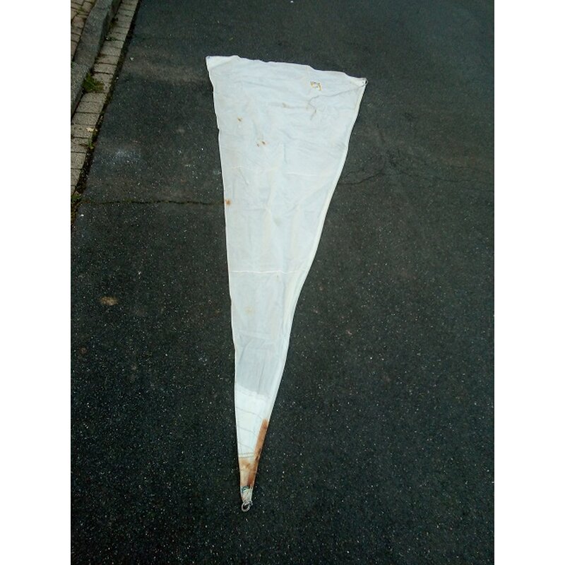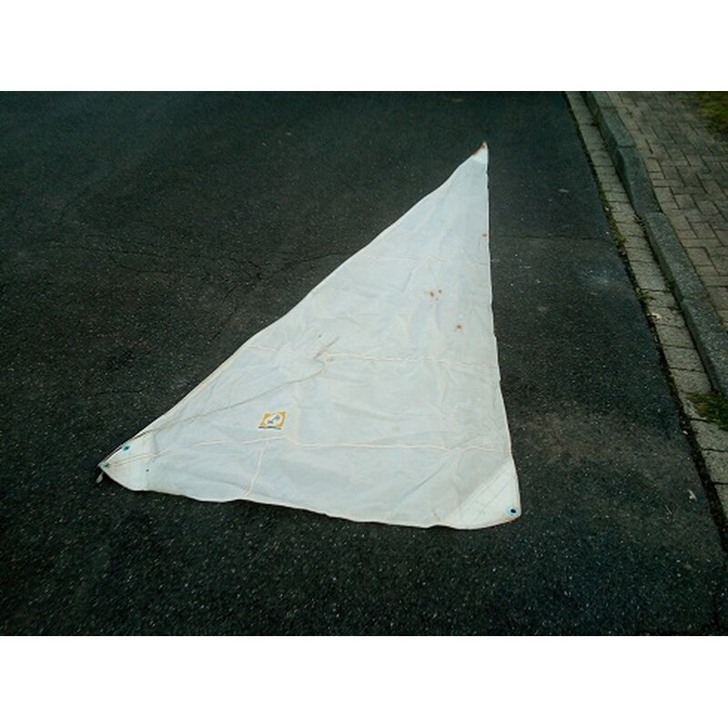 Das Segel ist älter, kann noch Jahre gesegelt werden, gebraucht mit Schmutz und Rostflecken